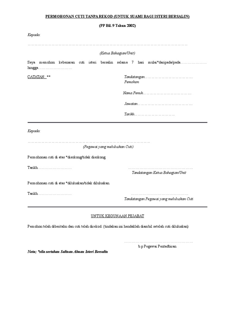 Borang Cuti Tanpa Rekod Untuk Suami Bagi Isteri Yang Bersalin Pdf
